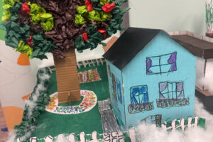 In January, the art room at Adult Day Services, became a space for reflection and storytelling as everyone explored the theme of “home.” With the guidance of Emily, ADS’s Art Therapist, clients designed and built houses representing places they’ve lived, sharing meaningful memories connected to those spaces. These unique creations came together to form our very own ADS community village. Group members suggested placing the houses on a culdesac so “we can all live together,” and they beautifully named the village Our Place — a perfect reflection of the community they’ve built with one another.